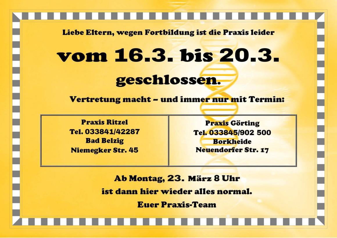 Wir machen Vertretung für alle umliegenden Kinderarztpraxen.